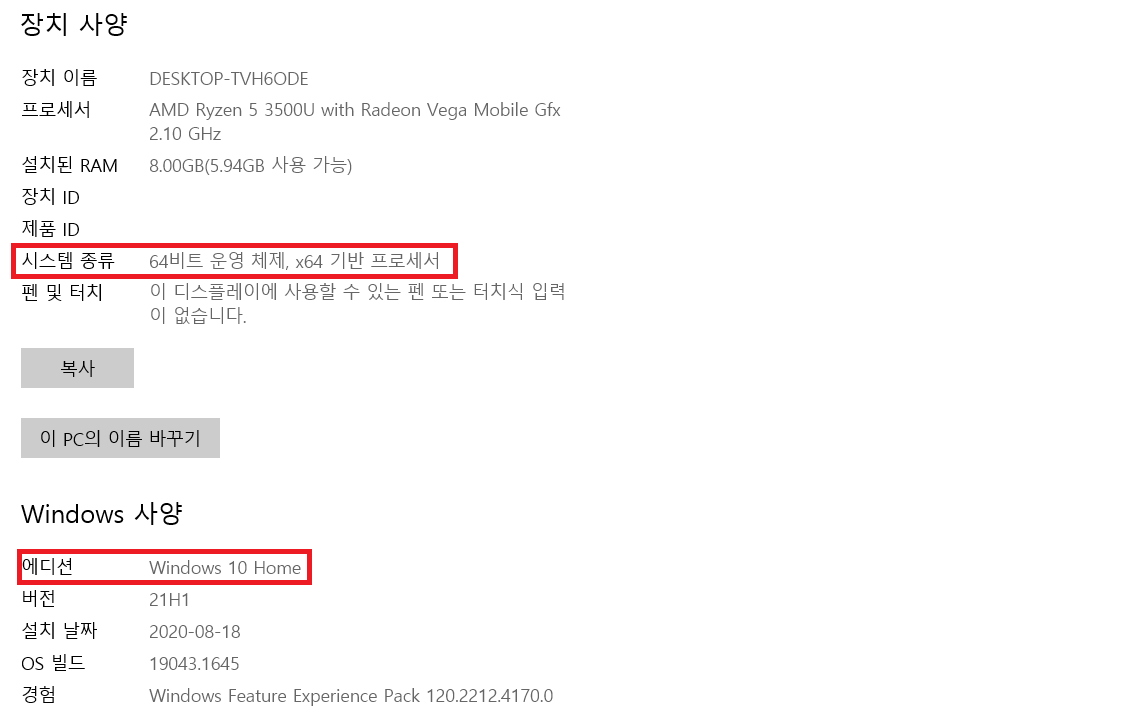 제 컴퓨터는 Win 10에 64bit임을 알 수 있습니다.