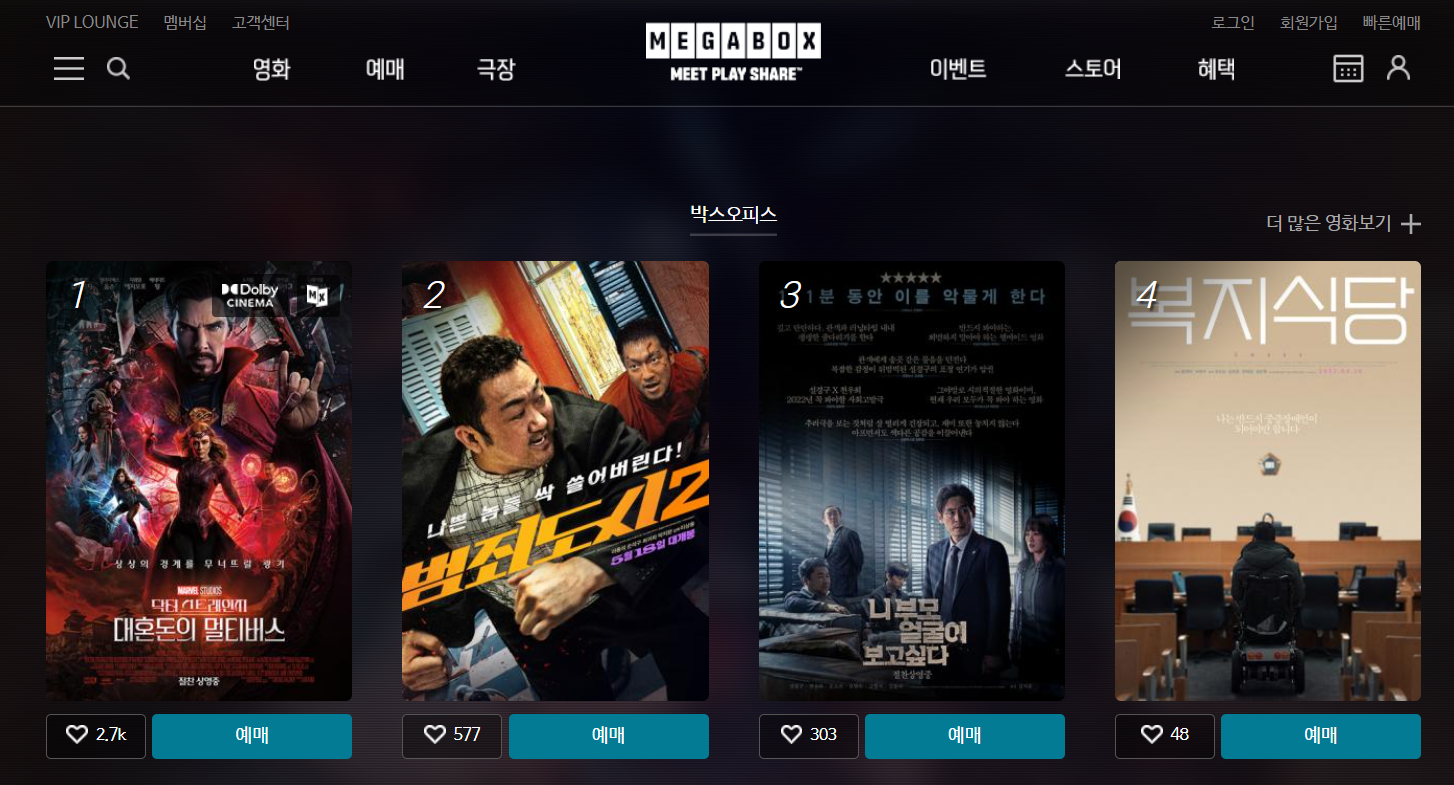 | 링크 : 메가박스 홈페이지 바로가기 |