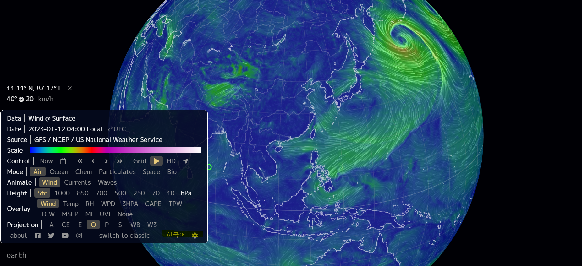 2. 해외사이트 이용 : Earth.nullschool.net