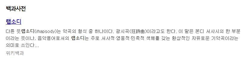 랩소디의 사전적 의미는 관능적이면서 형식 또는 내용이 비교적 자유로운 환상적 기악곡이라고 기술되어 있습니다. 또한 주로 서사적, 영웅적, 민족적 색채를 갖는 환상적인 자유로운 기악곡이라는 설명도 되어있죠.
