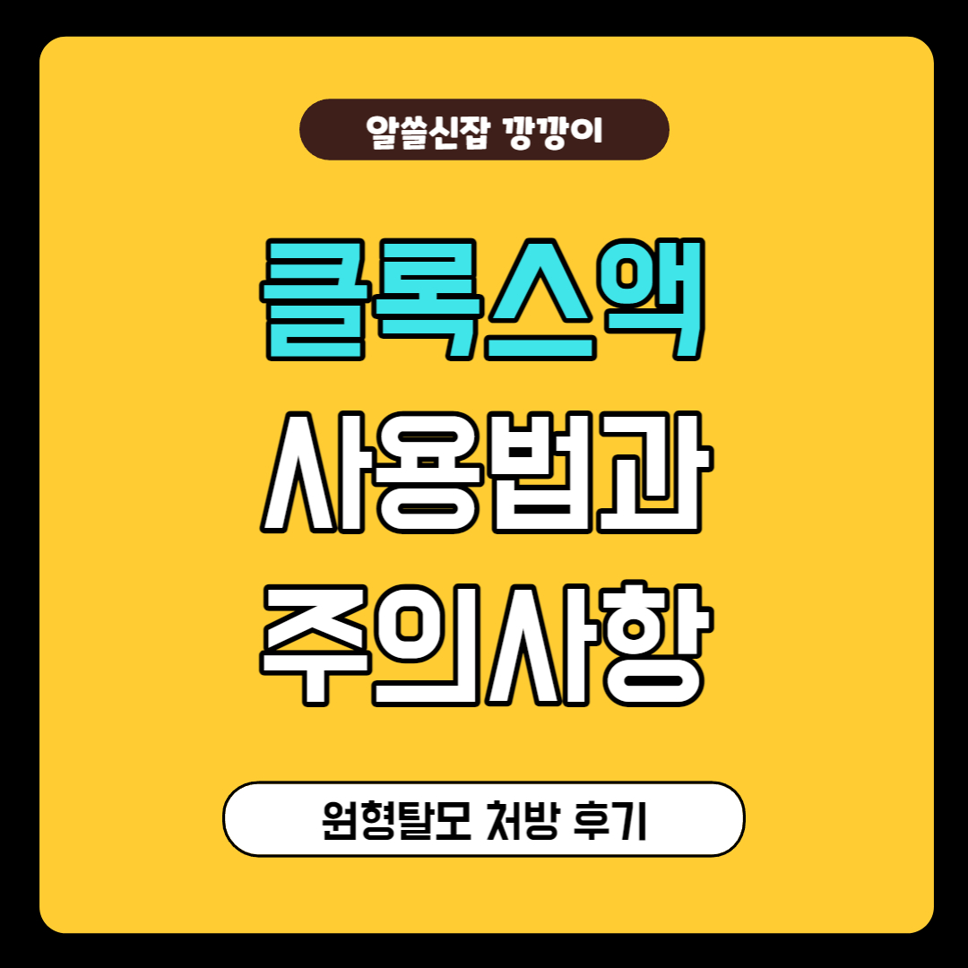오늘은 원형탈모가 시작되고 한 달 즈음 지났을 때 두피의 염증이 심하다며 의사 선생님이 처방해 준 클록스액의 사용법과 주의사항에 대해 알려드리고자 합니다. 저와 같은 처방은 받으신 분들은 참고하셨으면 좋겠습니다.