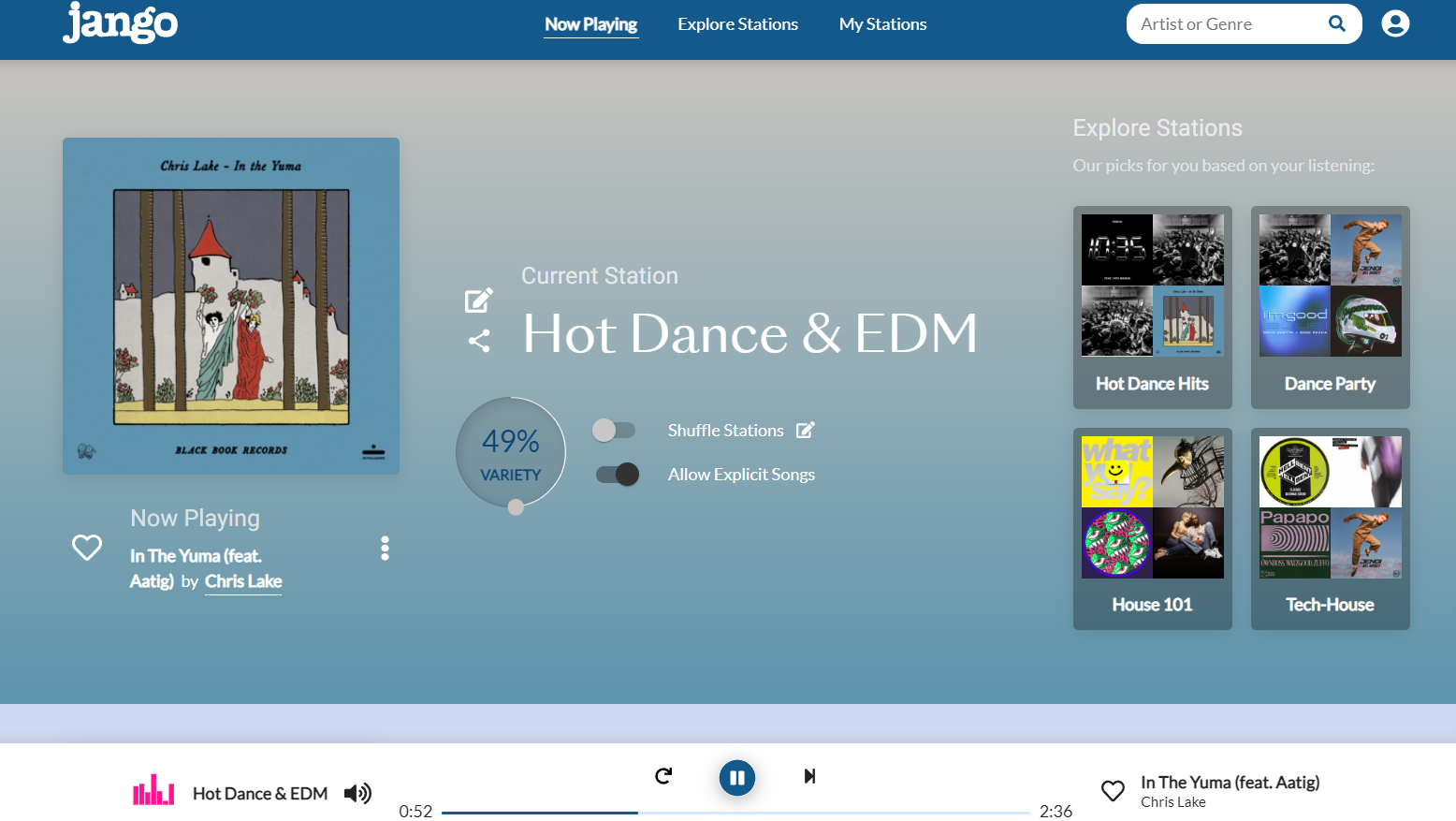 장고 또한 위의 사운드클라우드와 마찬가지로 해외 플랫폼인데요. 주를 이루는 것은 팝송입니다만, 국내 가요 또한 찾아 들을 수 있습니다. 장고의 경우는 구글 플레이스토어와 애플의 앱스토어에 어플도 있으므로 모바일로도 이용할 수 있다는 장점이 있습니다.