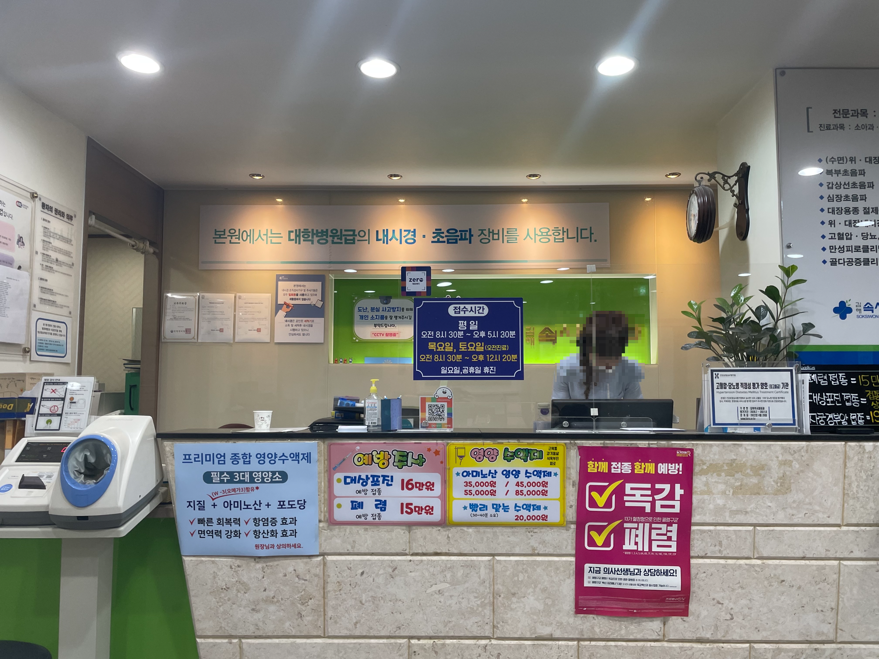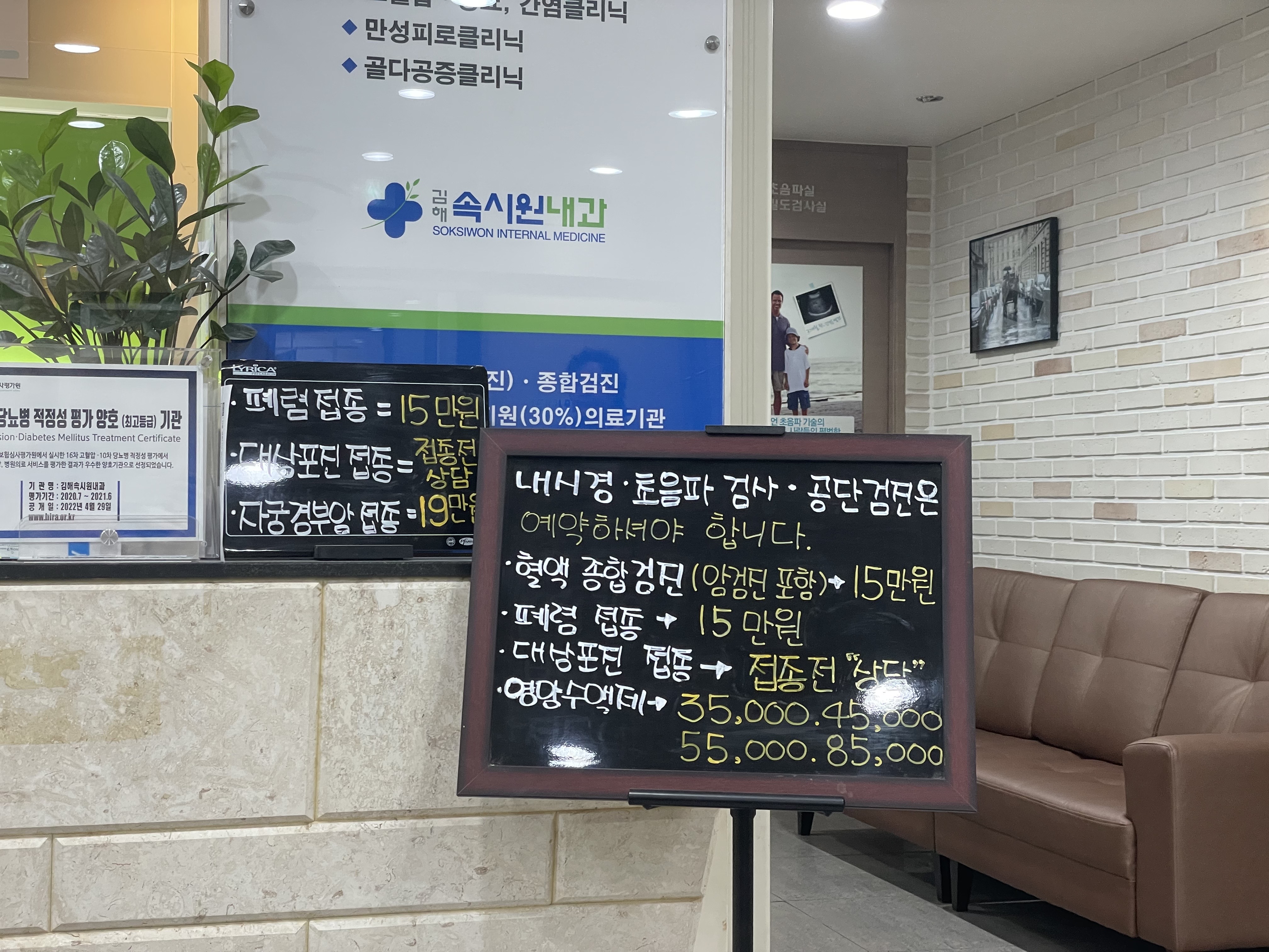제가 가다실 9가를 맞은 김해 속시원내과의원은 토요일에도 8시 30분부터 진료를 하기 때문에 평일날 시간을 낼 수 없는 직장인인 저도 부담 없이 방문해서 맞을 수 있었고, 제가 8시 30분 즈음 방문했는데 사람은 3명 정도 대기하고 있었습니다.