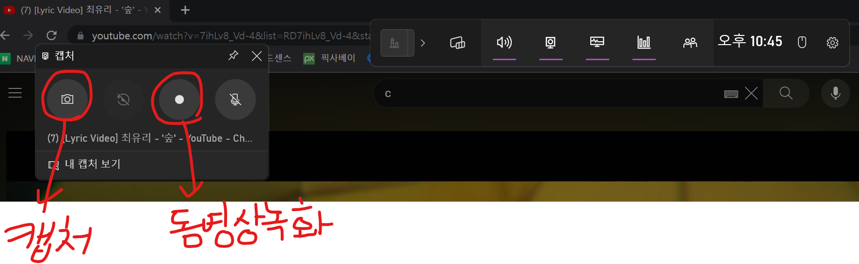 실제로 제가 좋아하는 노래인 최유리님의 숲을 유튜브에서 틀어놓고 녹화를 시켜보았는데요. 동영상을 보시면 아시겠지만, 생각보다 고퀄리티로 화면이 녹화된 것을 보실 수 있습니다.