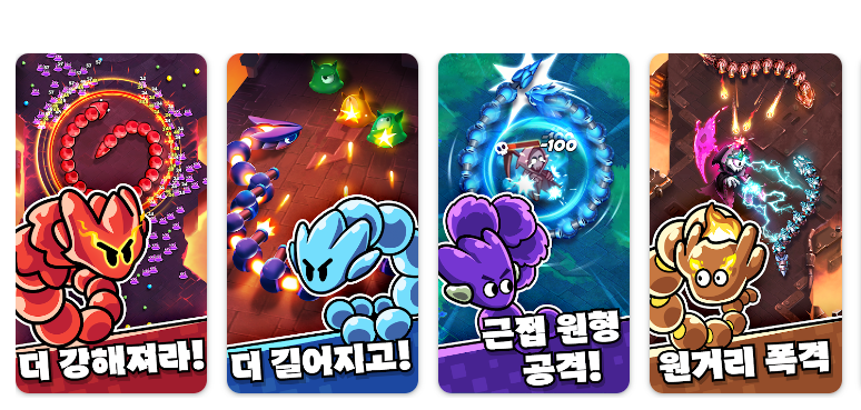 탕탕특공대로 유명한 하비에서 출시한 신작 게임입니다. 뱀이 되어 적을 물리치는 이 게임은 예전 고전게임에서 모티브를 가져온 것 같습니다. 예전에 이런 게임이 하나 있었던 것 같은데 이름이 기억은 안 나네요. 게임 난이도는 높은 편이며, 클리어하지 못할 때는 처음부터 다시 진행해야 한다는 불편함이 있어서 오기로 하게 되는 게임입니다.