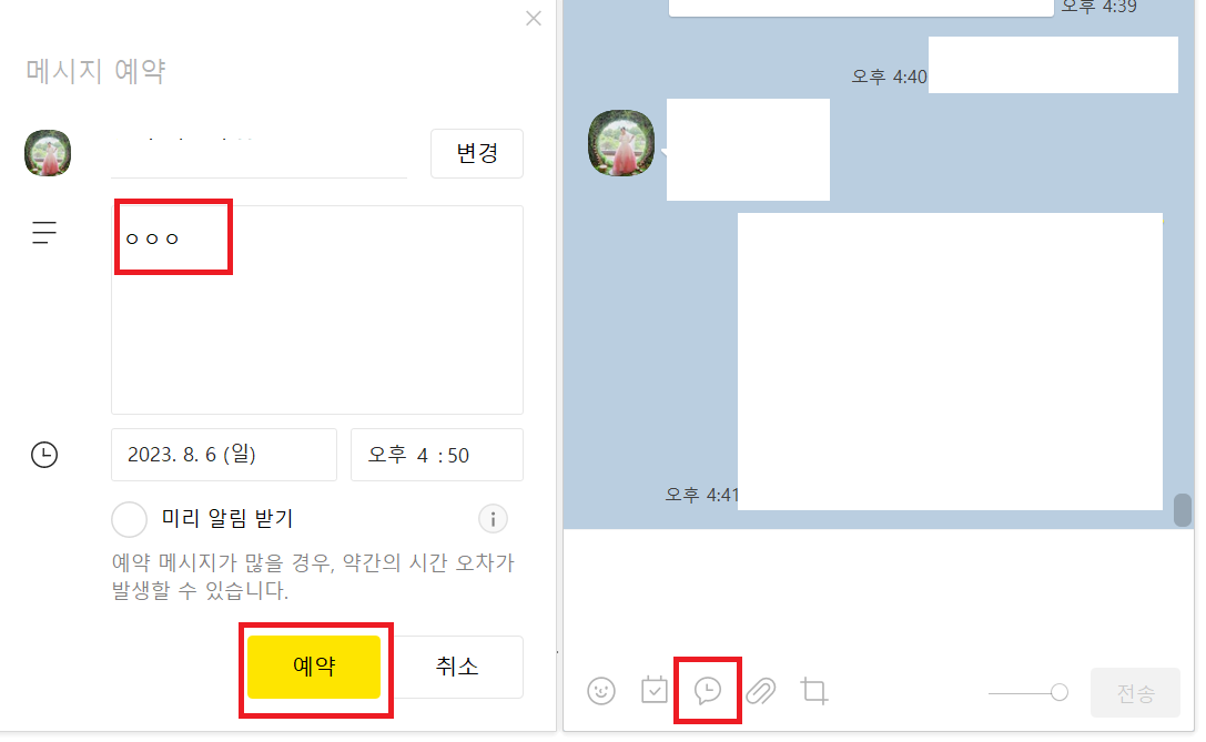 카톡 예약문자 보내기, 취소하기