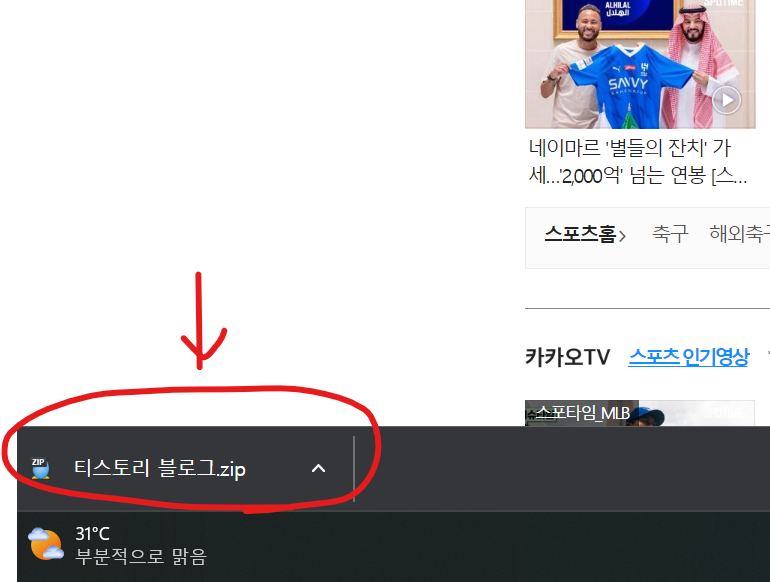 - 크롬 브라우저를 재실행하면 다운로드 알림창이 아래로 바뀌어있습니다.