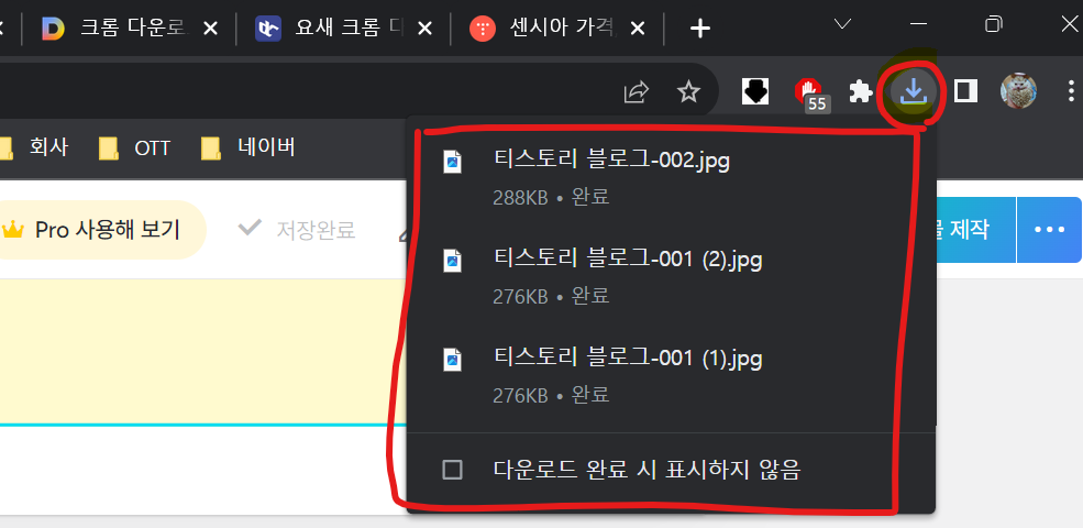 크롬 다운로드 창 아래로 내리는 방법