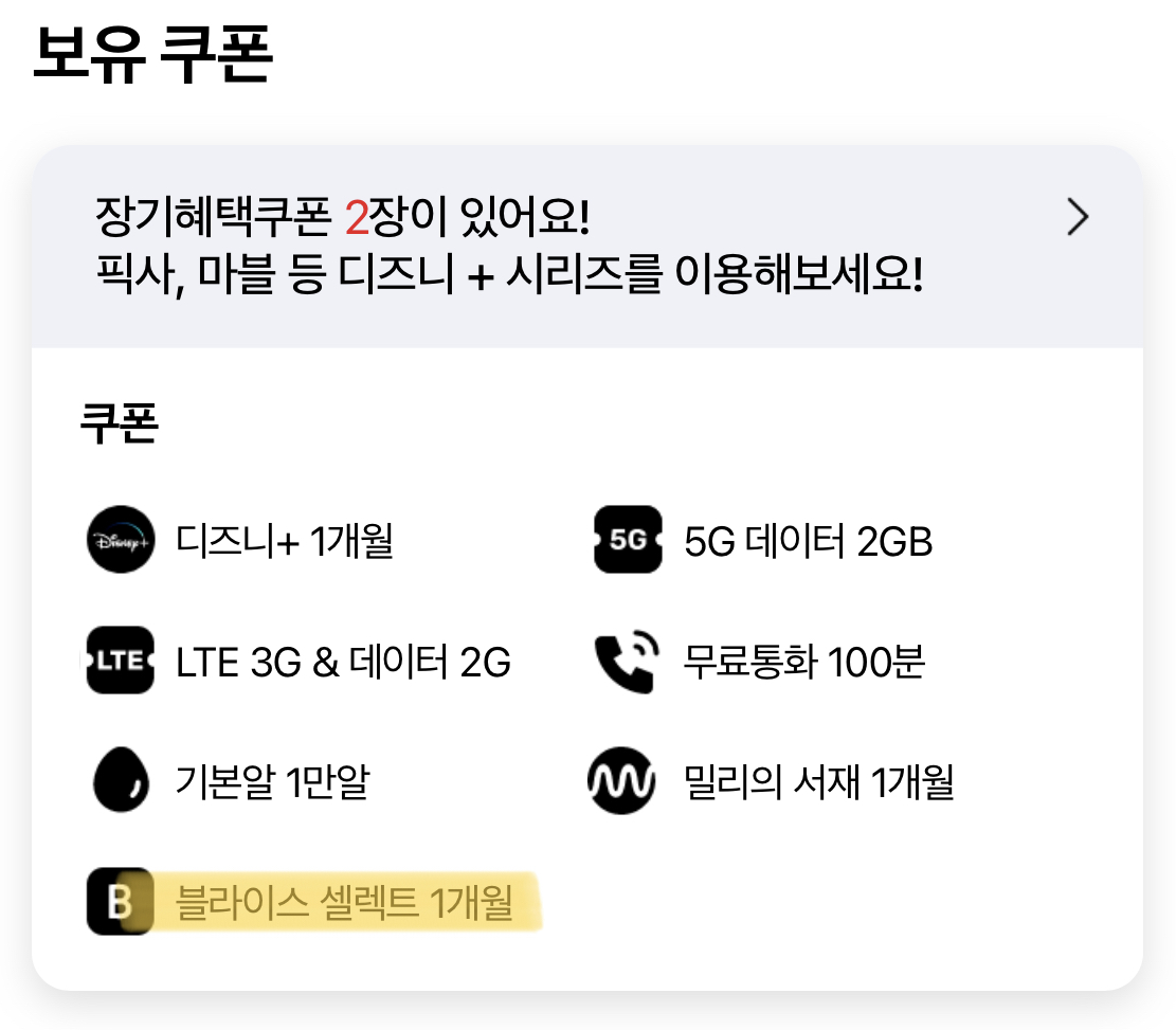 블라이스 셀렉트는 KT에서 운영하는 플랫폼이기 때문에 KT 자체적으로 혜택을 가지고 있습니다. 바로 KT 장기고객 혜택을 이용하는 것입니다.