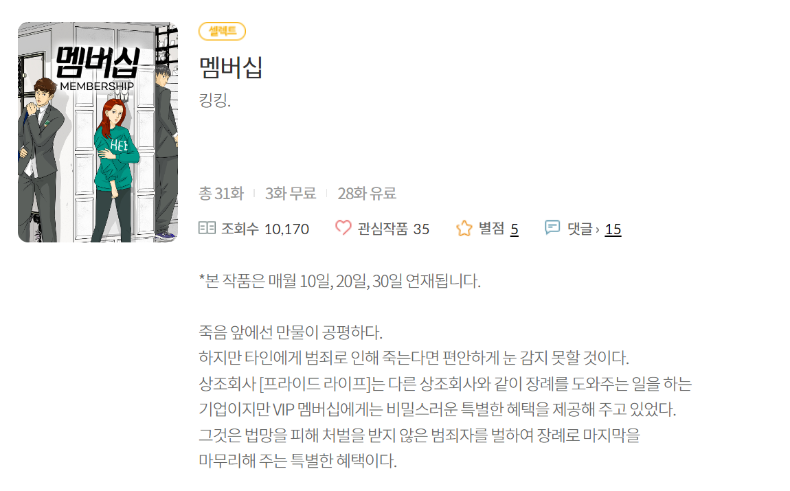 드라마, 학원, 개그, 일상, 느와르에 관심이 있다면 멤버십입니다.