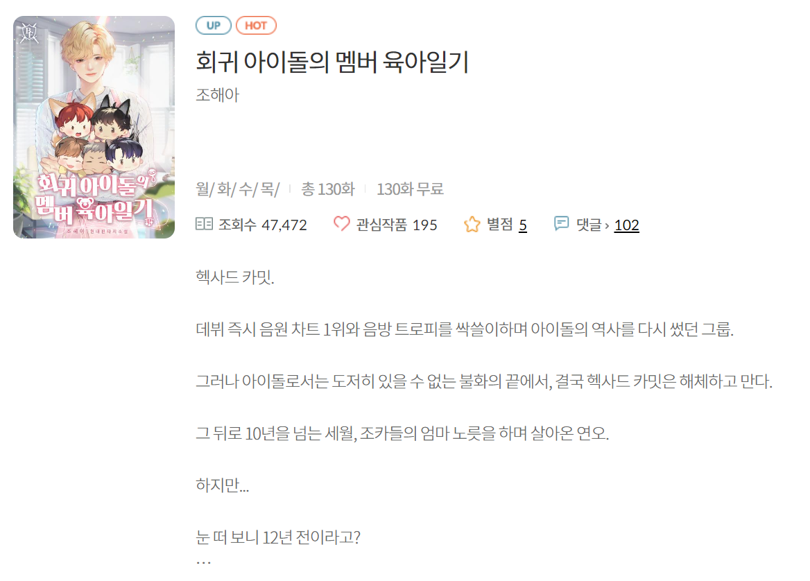 - 장르 : 아이돌, 성장물, 회귀물, 힐링물