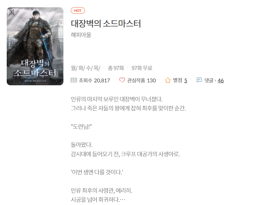 7. 대장벽의 소드마스터 (해피아울) (▶바로가기)