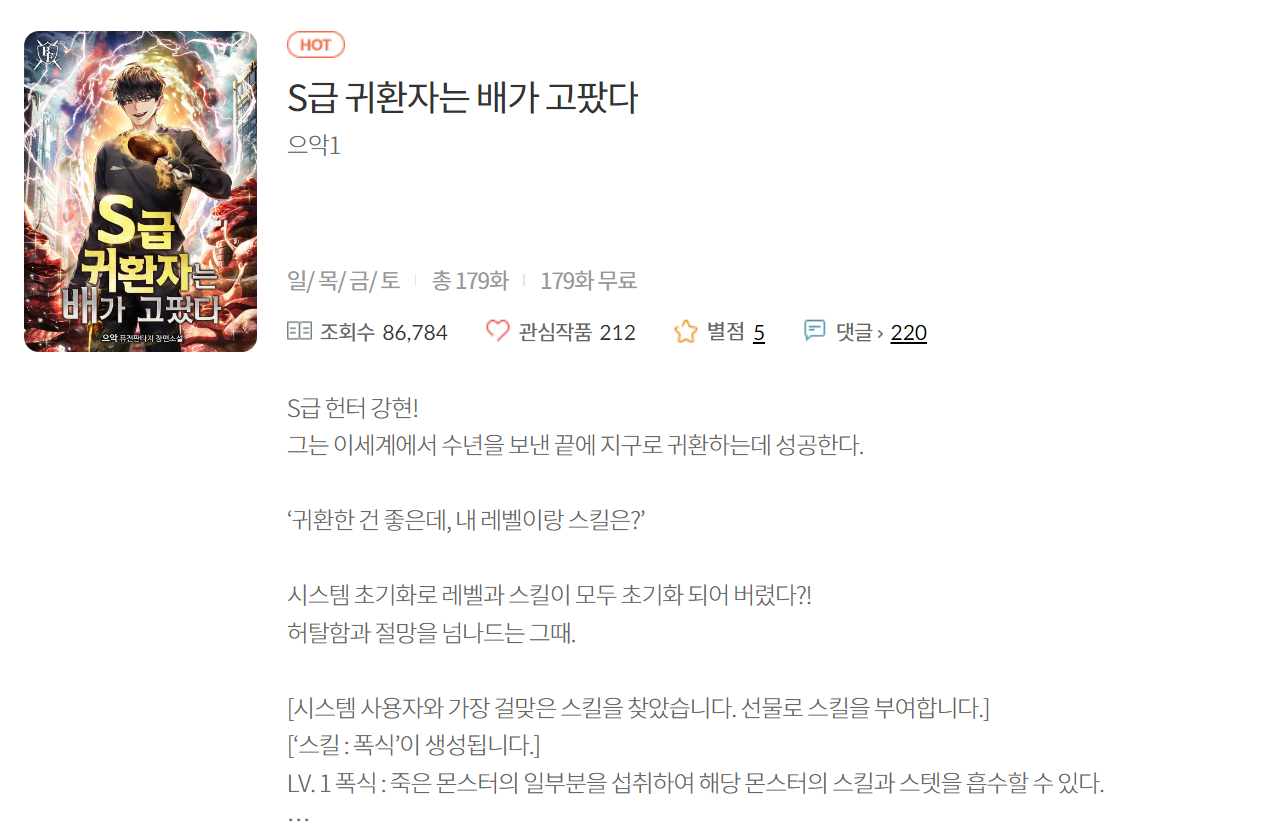 1. S급 귀환자는 배가 고팠다 (으악1) (▶바로가기)