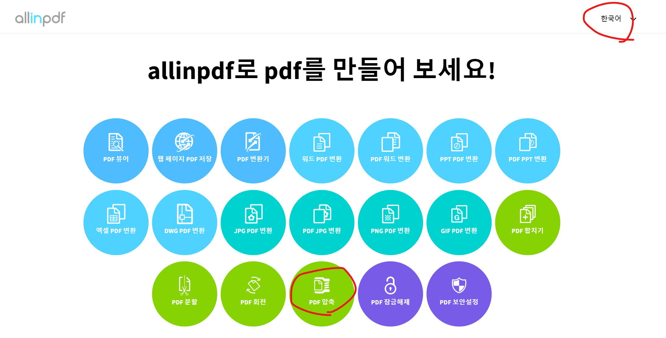 Smallpdf보다는 덜 알려진 Allinpdf 또한 pdf 파일크기를 줄일 수 있는 사이트 중 하나입니다. 한글을 지원하기 때문에 smallpdf에 비해 한국인들이 더 많이 이용하는 것 같습니다. 하지만, 크롬내부 기능을 통해 자동으로 영어를 한국어로 번역하는 기능을 쓰면 큰 불편 없이 smallpdf를 이용하실 수 있습니다. (▶크롬 영어 번역기능 알아보기)