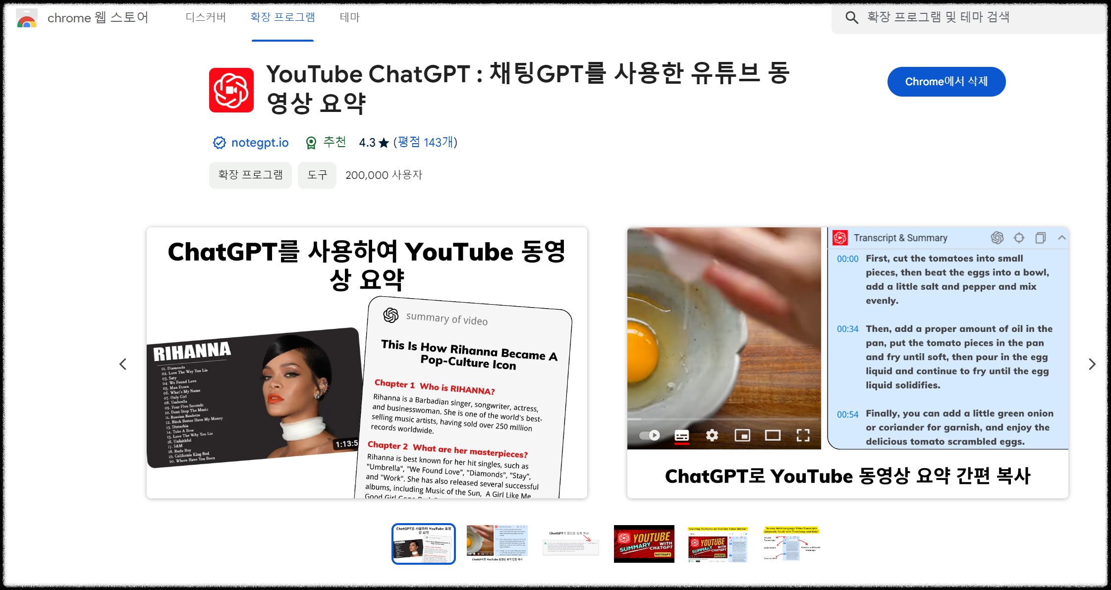 크롬 확장프로그램 Youtube ChatGPT (▶바로가기)