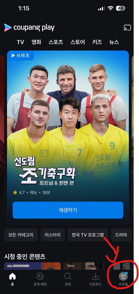 - 쿠팡플레이 실행하여 로그인하기.