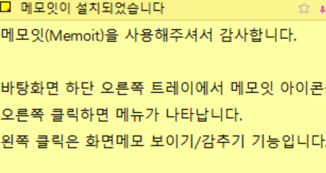 프로그램 설치가 완료되면 이렇게 상단에 메모잇을 사용해주셔서 감사합니다라는 문구가 적힌 메모창이 생성됩니다. 작업표시줄 하단에서도 메모잇아이콘을 확인할 수 있습니다.