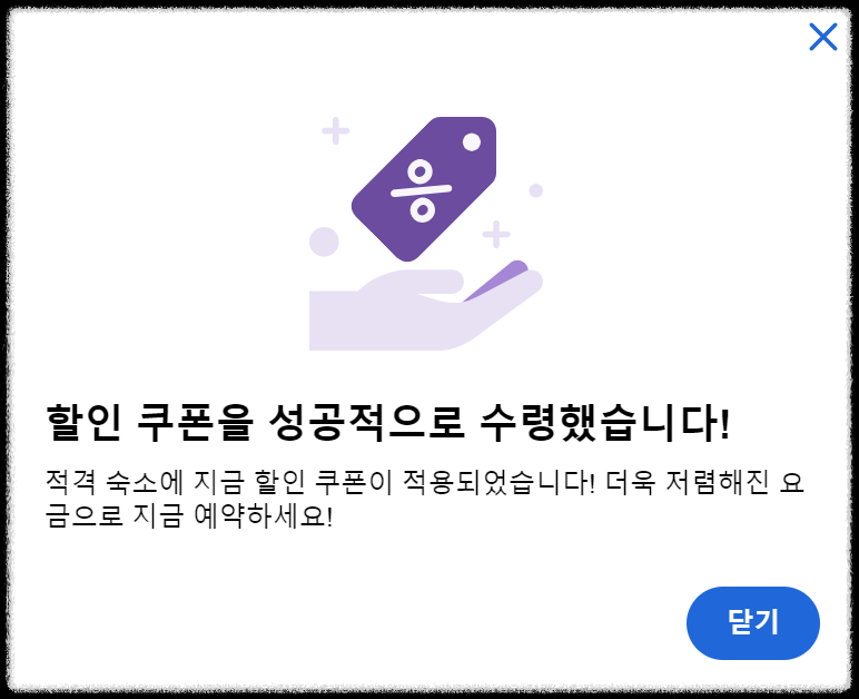 - 쿠폰 적용 가능 표시가 있는 숙소를 검색합니다.