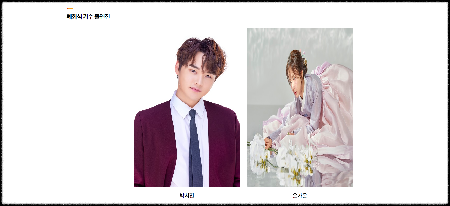 2024년 10월 17일 목요일 19:40분부터 시작되는 폐회식의 초대가수로는 박서진과 은가은이 출연합니다.