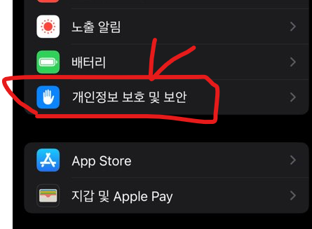 - 개인정보 보호 및 보안 탭을 누른다.