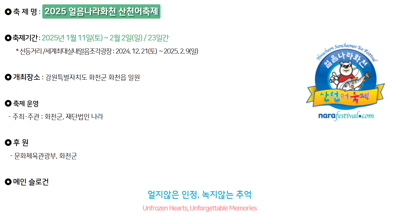 2025년 화천 산천어축제 일정