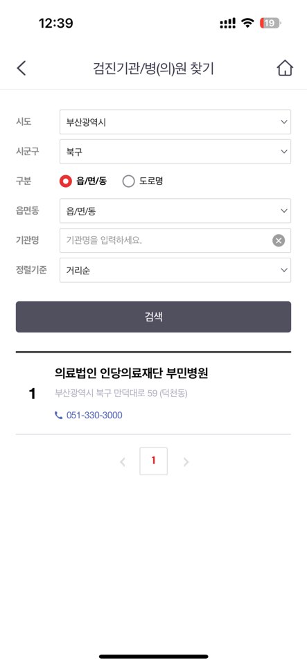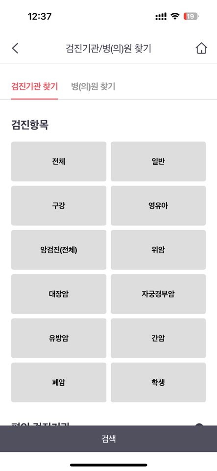 어플을 실행하신 다음 건강iN > 검진기관/병(의)원 찾기를 선택하여 지역과 검진 항목을 입력하면 검색자님의 주변에 있는 검진 가능 기관을 확인하실 수 있습니다.