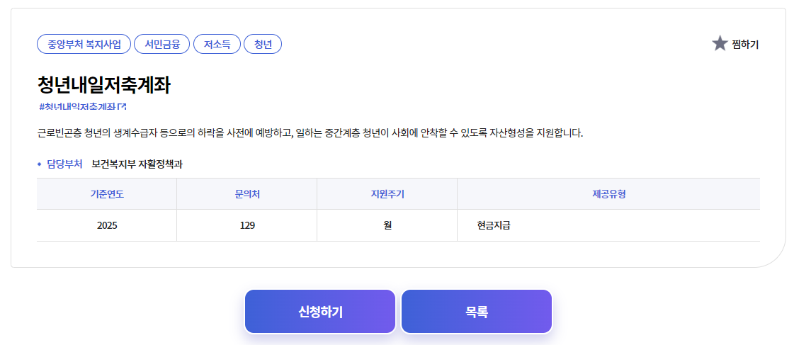 📎 신청 바로가기: 복지로 청년내일저축계좌 신청