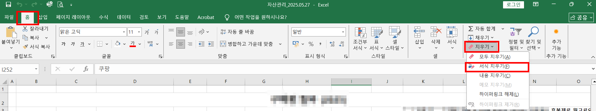 - '홈' 탭 → '지우기' → '서식 지우기'