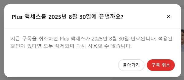 - ❌ 할인 실패: 바로 구독 취소 화면으로 넘어갑니다.