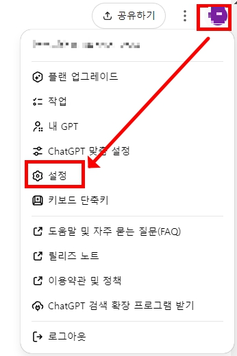 - 오른쪽 하단의 프로필 이미지 클릭 → 설정(Settings) 선택