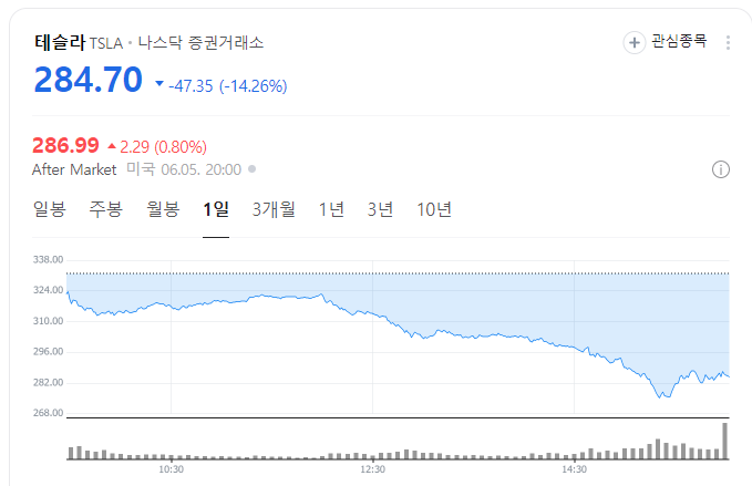 4. 테슬라 현재 주가: 하루 만에 14% 폭락