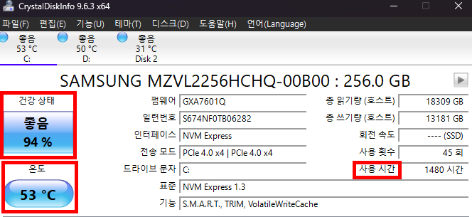 2025년 하드디스크 SSD 체크방법 (+크리스탈디스크인포 다운로드)