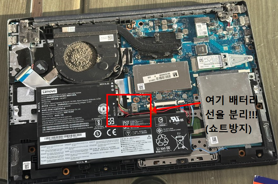 4️⃣ 배터리 연결 해제 (중요)