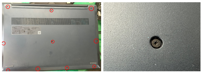 하판 나사가 T5 별모양으로 10개가 체결되어 있습니다. 해당 나사를 풀어주세요.